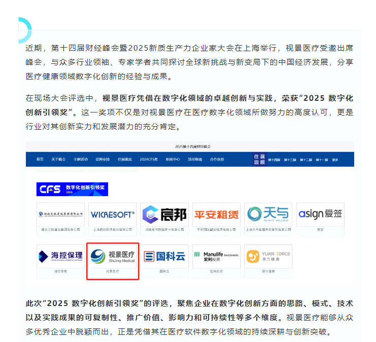 喜讯!视景医疗荣获“2025数字化创新引领奖”!