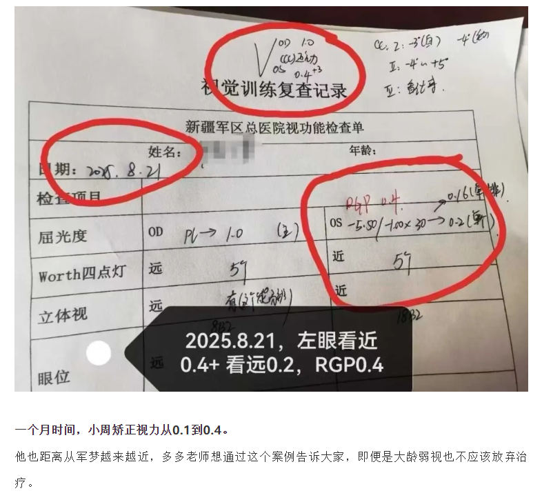 17岁还能治弱视?一个月视力从0.1到0.4,他的参军梦有救了!