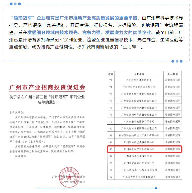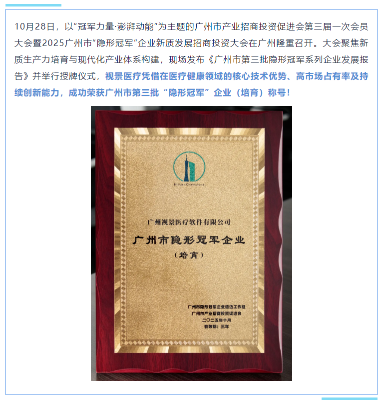 喜讯!广州公布第三批“隐形冠军企业”名单,视景医疗荣耀上榜