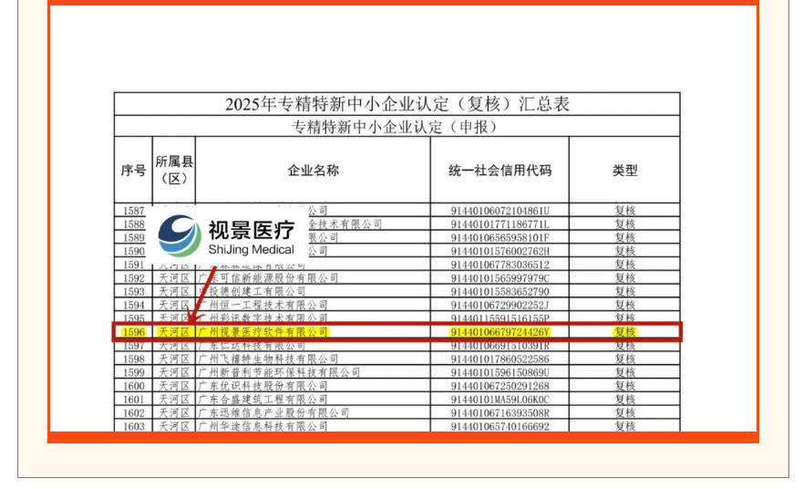 恭贺|视景医疗连续入选广东省2025年“专精特新”企业名单