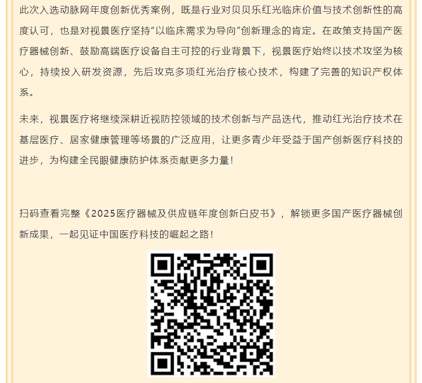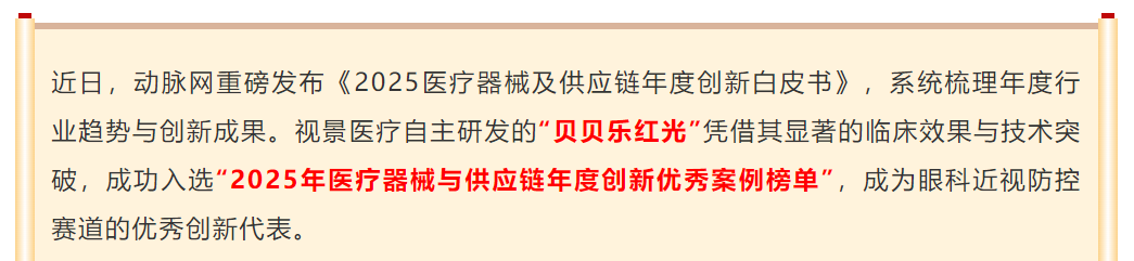 喜讯!视景医疗贝贝乐红光入选动脉网《2025医疗器械及供应链年度创新白皮书》年度创新优秀案例