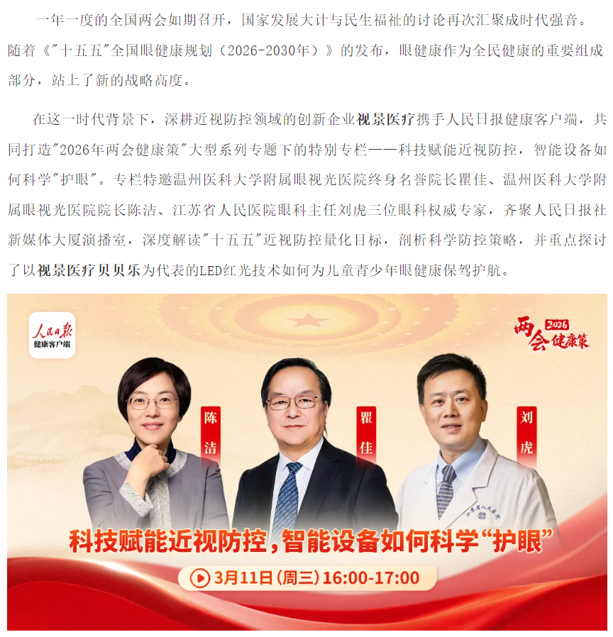 两会健康策聚焦近视防控 | 权威专家共话科技护眼,视景医疗LED红光成合规防控新选择